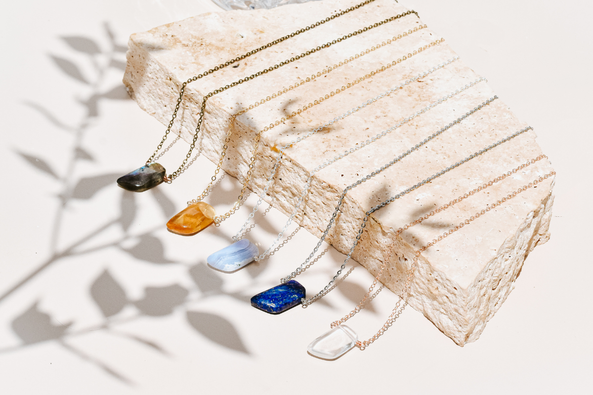 Small Smooth Clear Crystal Quartz Crystal Slab Necklace - Small Smooth Clear Crystal Quartz Crystal Slab Necklace - 14k Rose Gold Fill - Luna Tide Handmade Crystal Jewellery