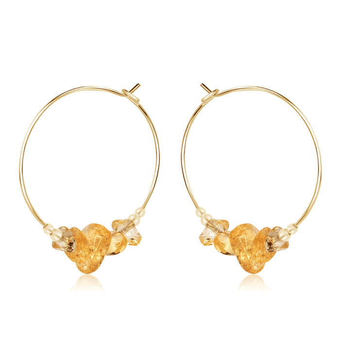 Yellow Citrine Gemstone Bead Drop Hoop Earrings