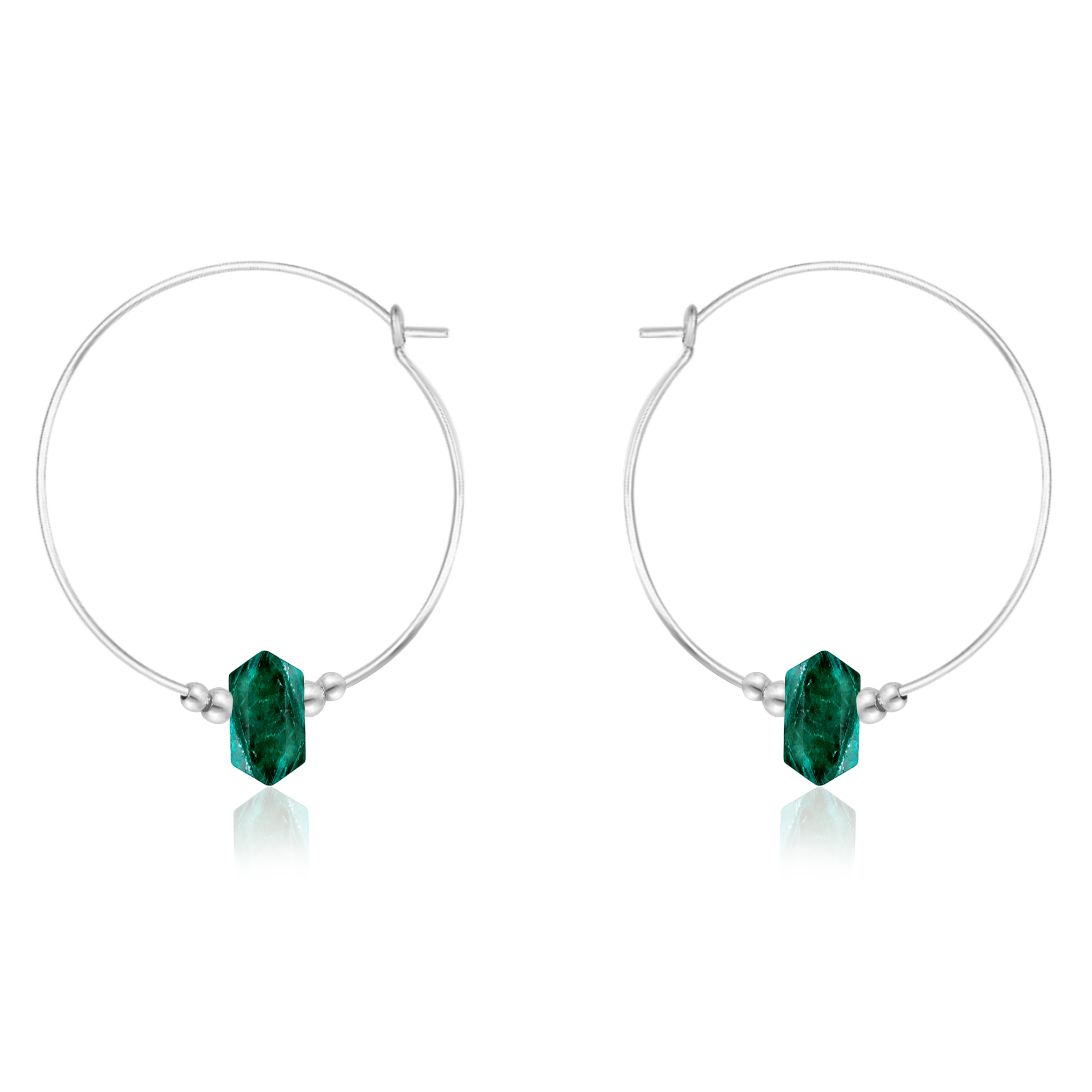 Large Hoop Emerald Double Terminated Crystal Point Earrings