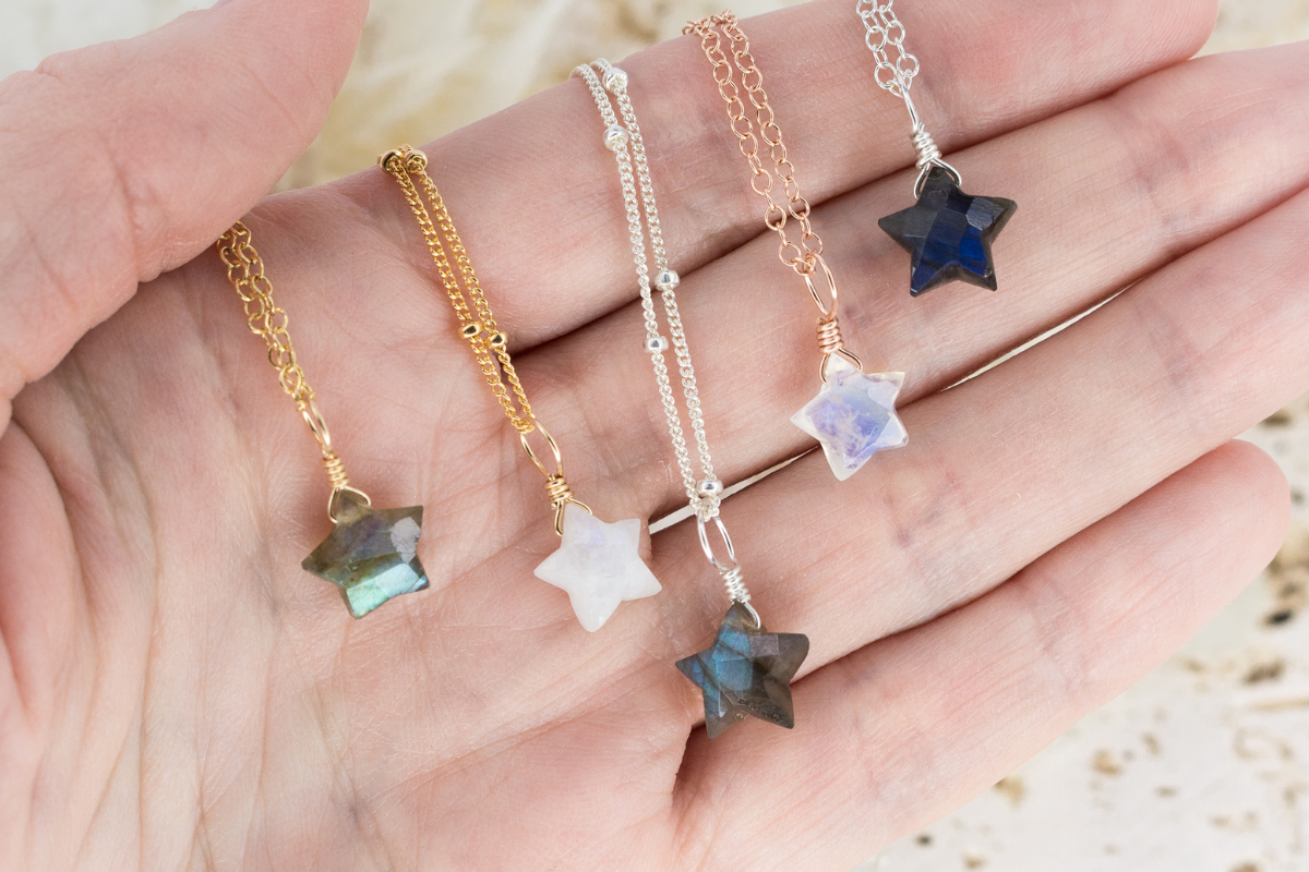 Rainbow Moonstone Tiny Star Pendant Choker Necklace Luna Tide Skip to content