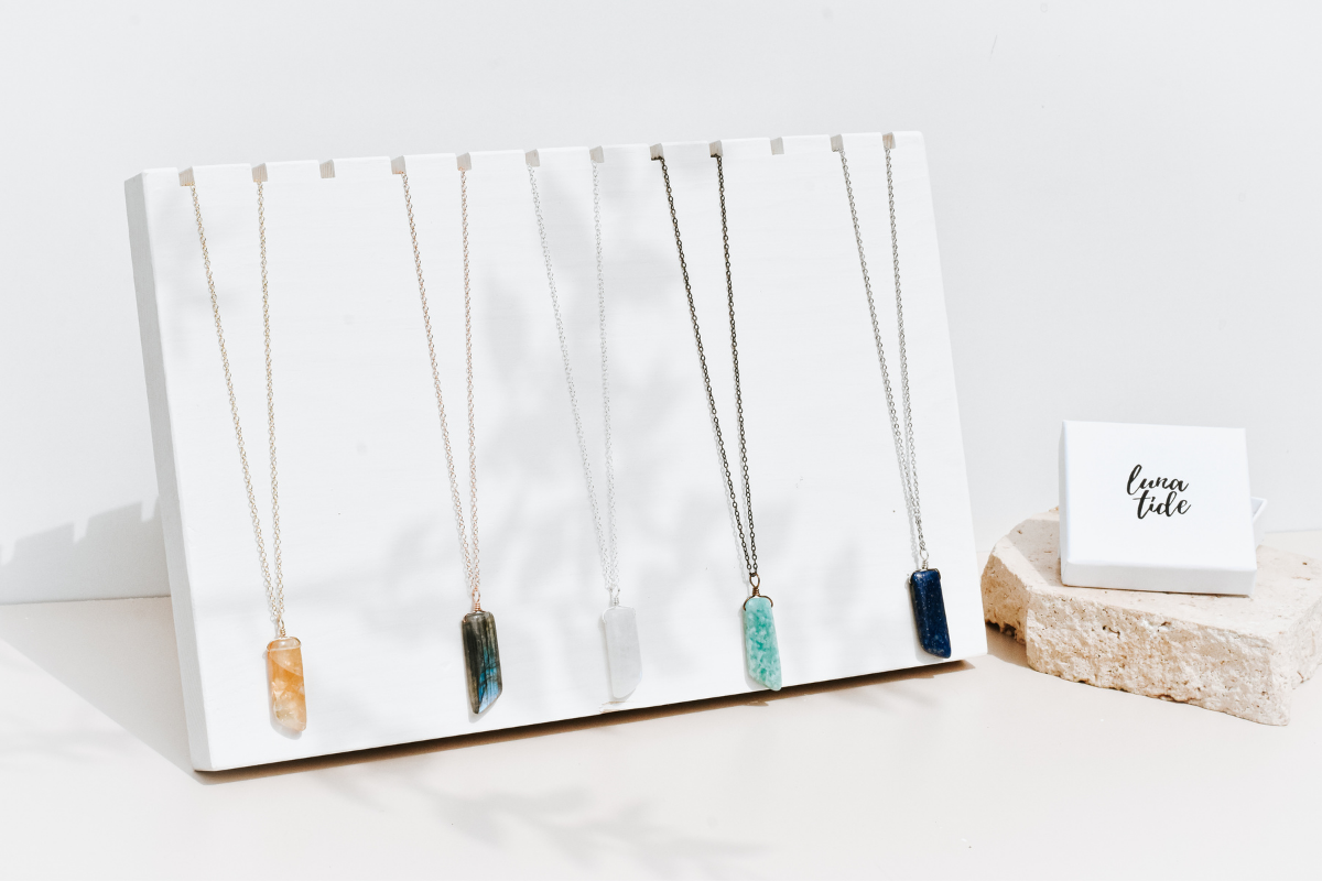 Handmade using natural rainbow moonstone, these smooth crystal point necklaces are truly one-of-a-kind, just like us free-spirited souls. The pendant is smooth and flat, laying close to your skin so you'll feel even more connected to Mother Nature as you explore the world each day. Team with jeans and a flowing cami for a relaxed look and let your statement necklace do the talking.