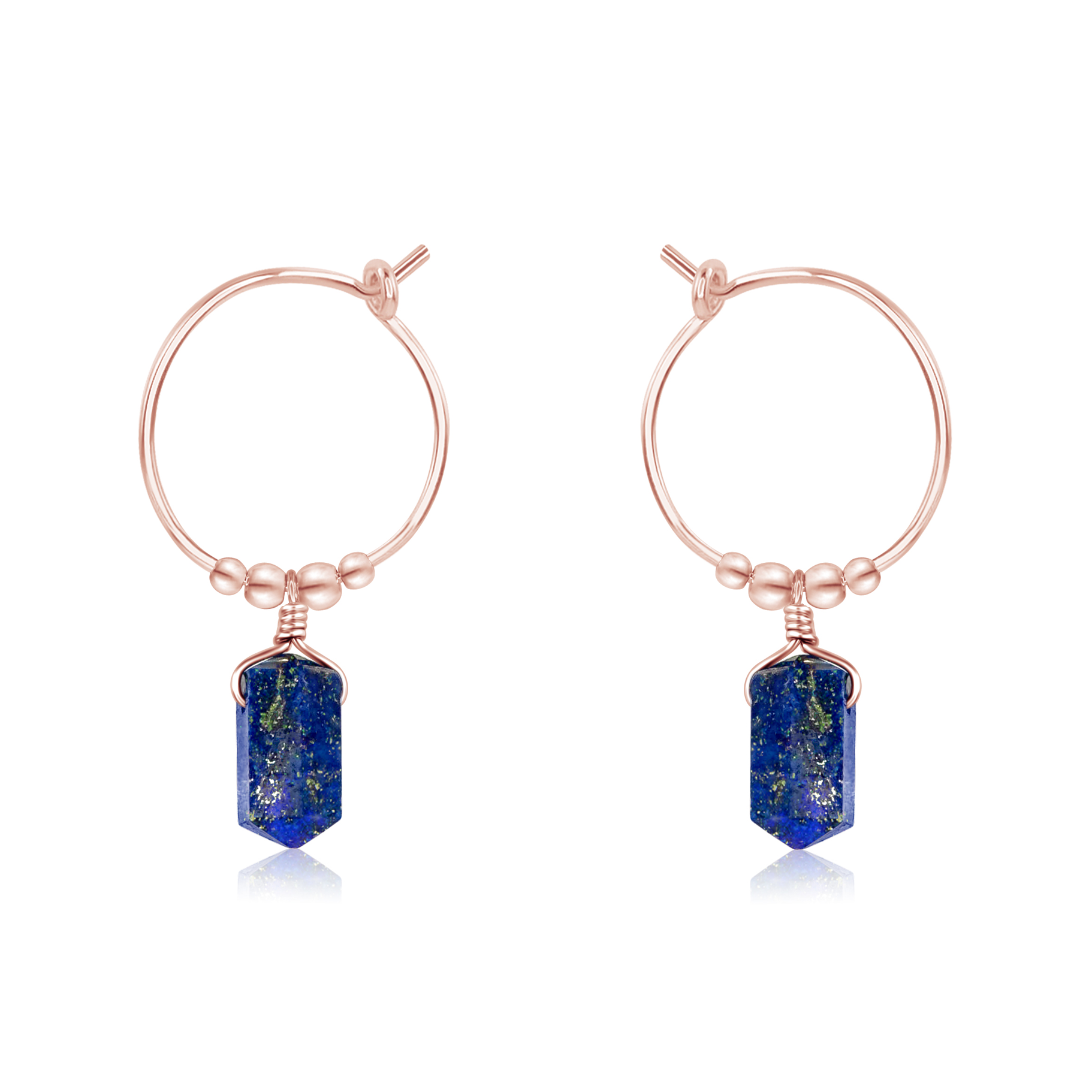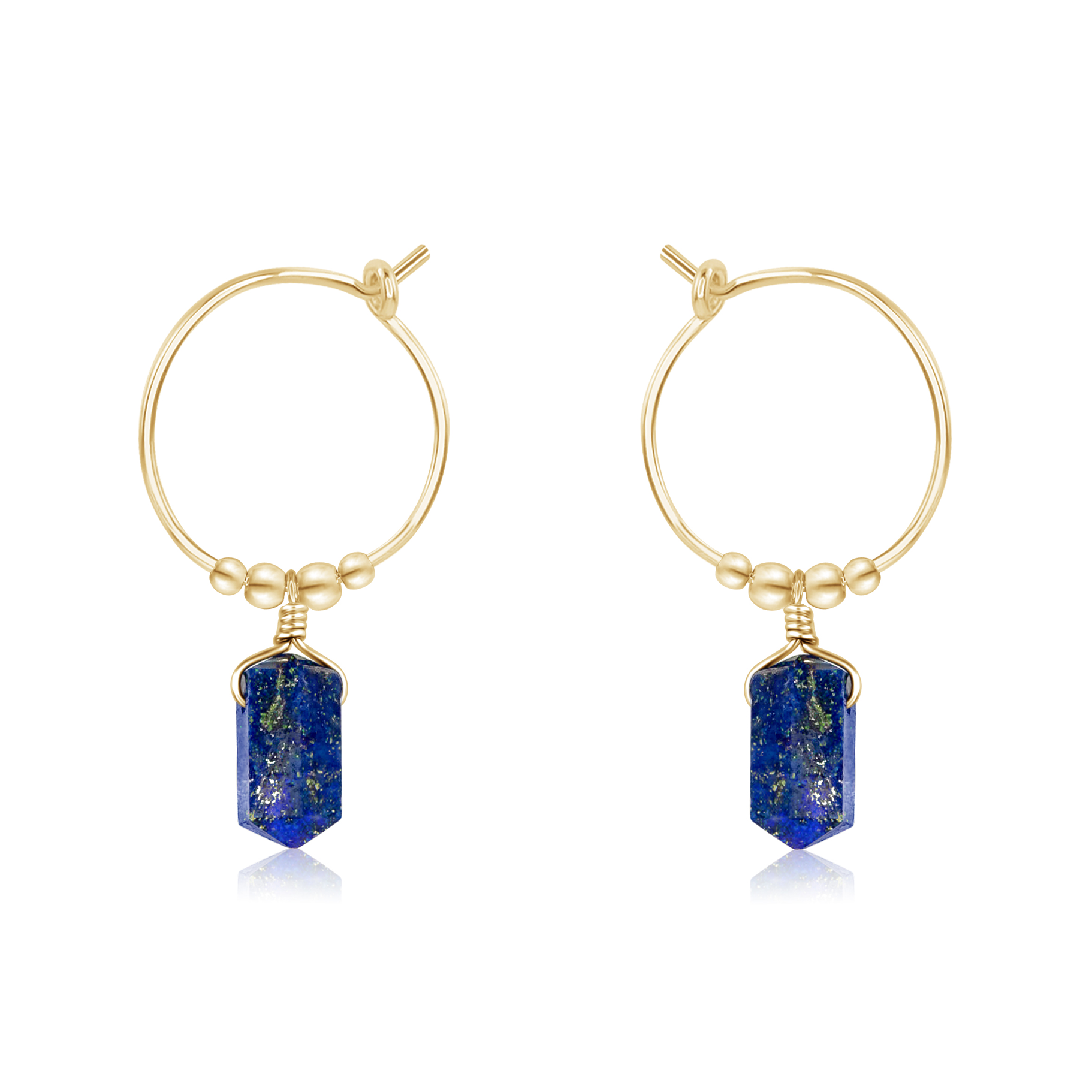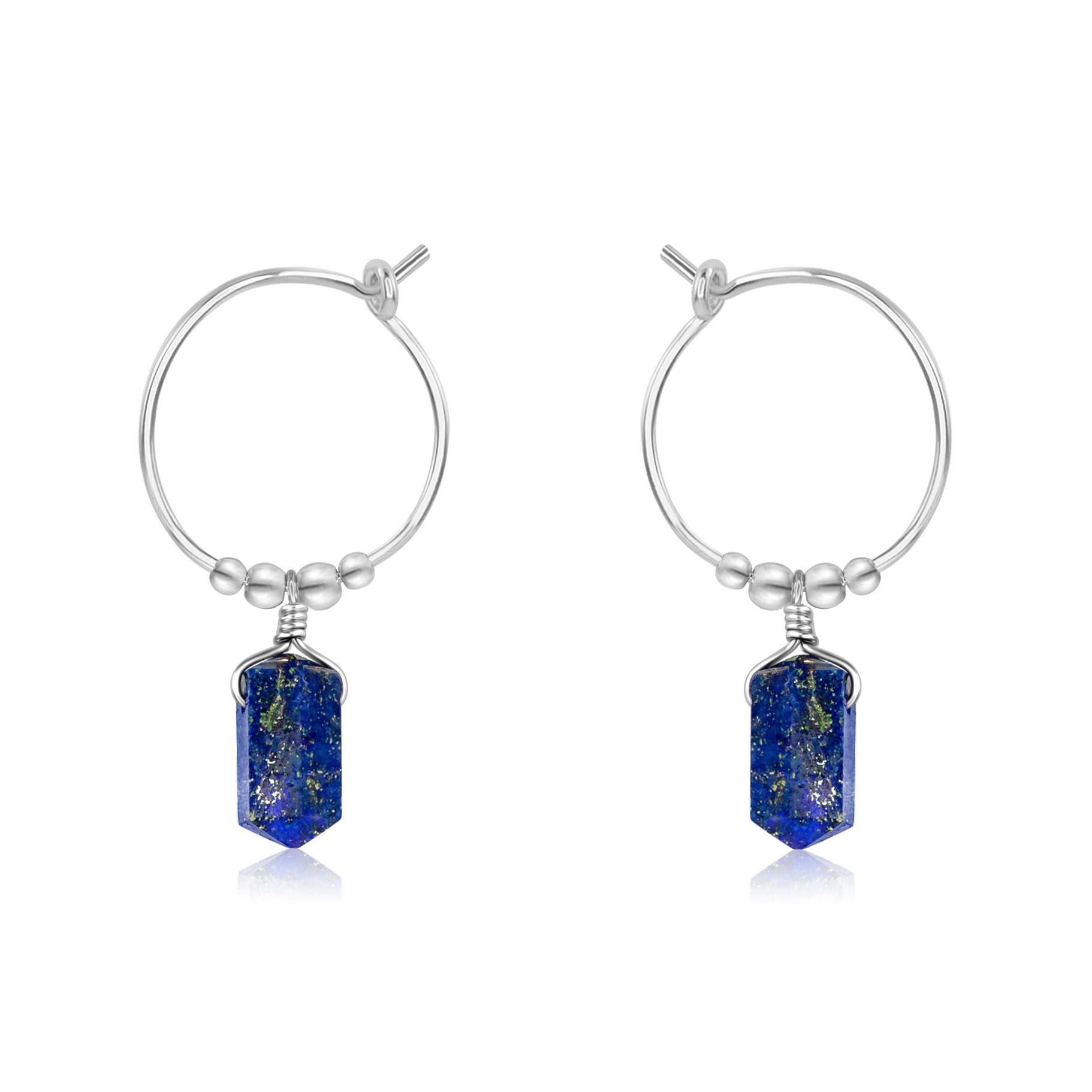 Double Terminated Lapis Lazuli Mini Crystal Point Dangle Hoop Earrings