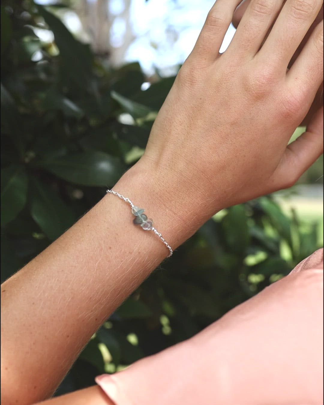 Fluorite Chip Bead Bar Bracelet - Fluorite Chip Bead Bar Bracelet - Sterling Silver - Luna Tide Handmade Crystal Jewellery