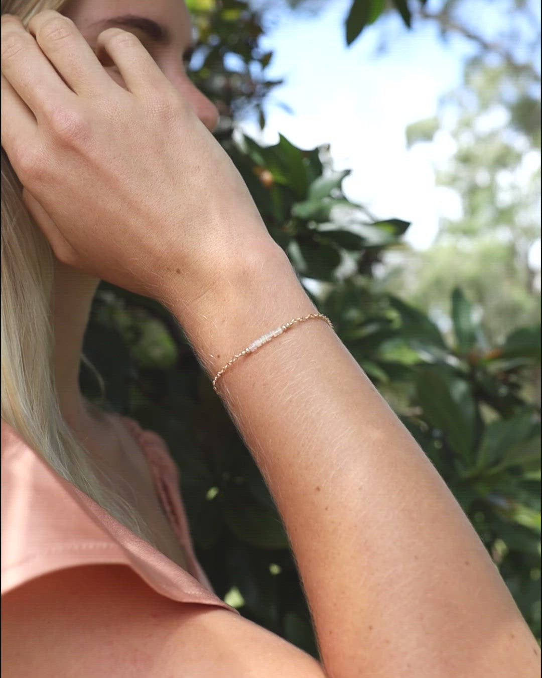 Make every day special in our tiny Ethiopian opal gemstone bead bar bracelet. This bracelet is a dainty, feminine design. The semi-precious gemstone beads used in this bracelet are made from natural, genuine gemstones that have been faceted cut so they sparkle in the light, making it the ideal bracelet for evening wear, weddings and special occasions.