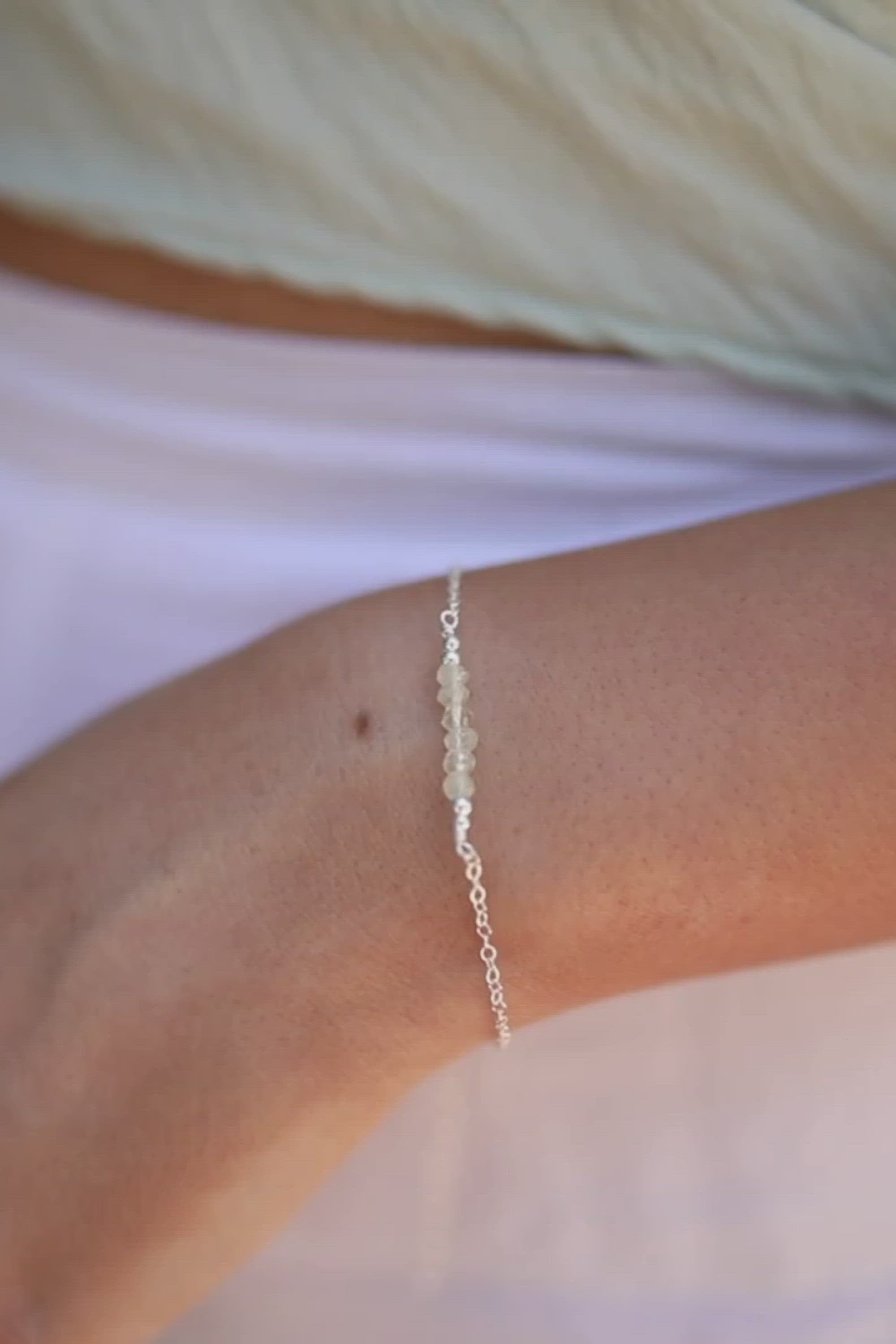 Make every day special in our tiny green prehnite gemstone bead bar bracelet. This bracelet is a dainty, feminine design. The semi-precious gemstone beads used in this bracelet are made from natural, genuine gemstones that have been faceted cut so they sparkle in the light, making it the ideal bracelet for evening wear, weddings and special occasions.