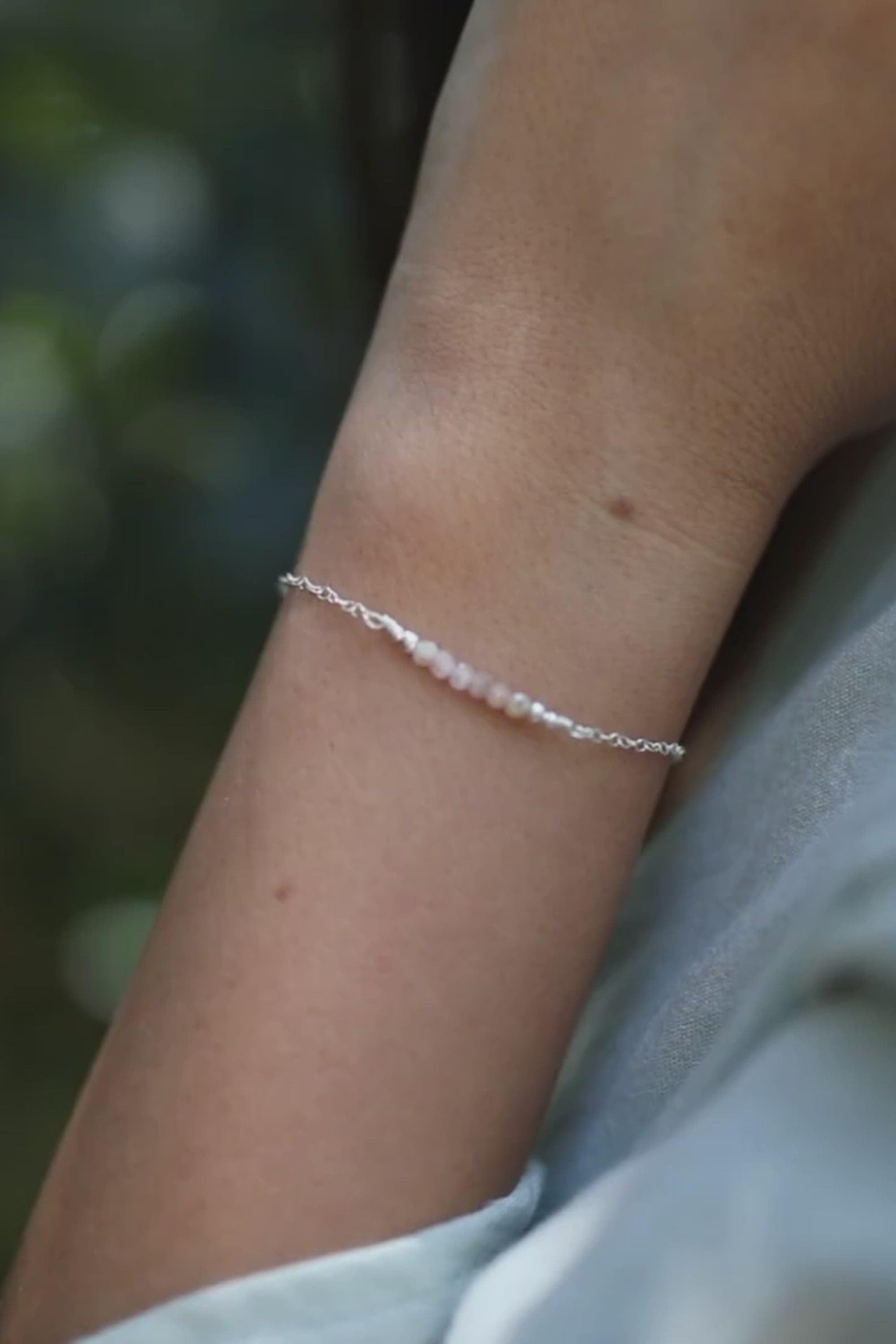 Make every day special in our tiny orange sunstone gemstone bead bar bracelet. This bracelet is a dainty, feminine design. The semi-precious gemstone beads used in this bracelet are made from natural, genuine gemstones that have been faceted cut so they sparkle in the light, making it the ideal bracelet for evening wear, weddings and special occasions.