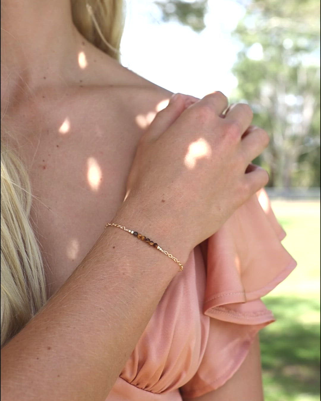 Sparkling Tiger's Eye Gemstone Faceted Bead Bar Bracelet